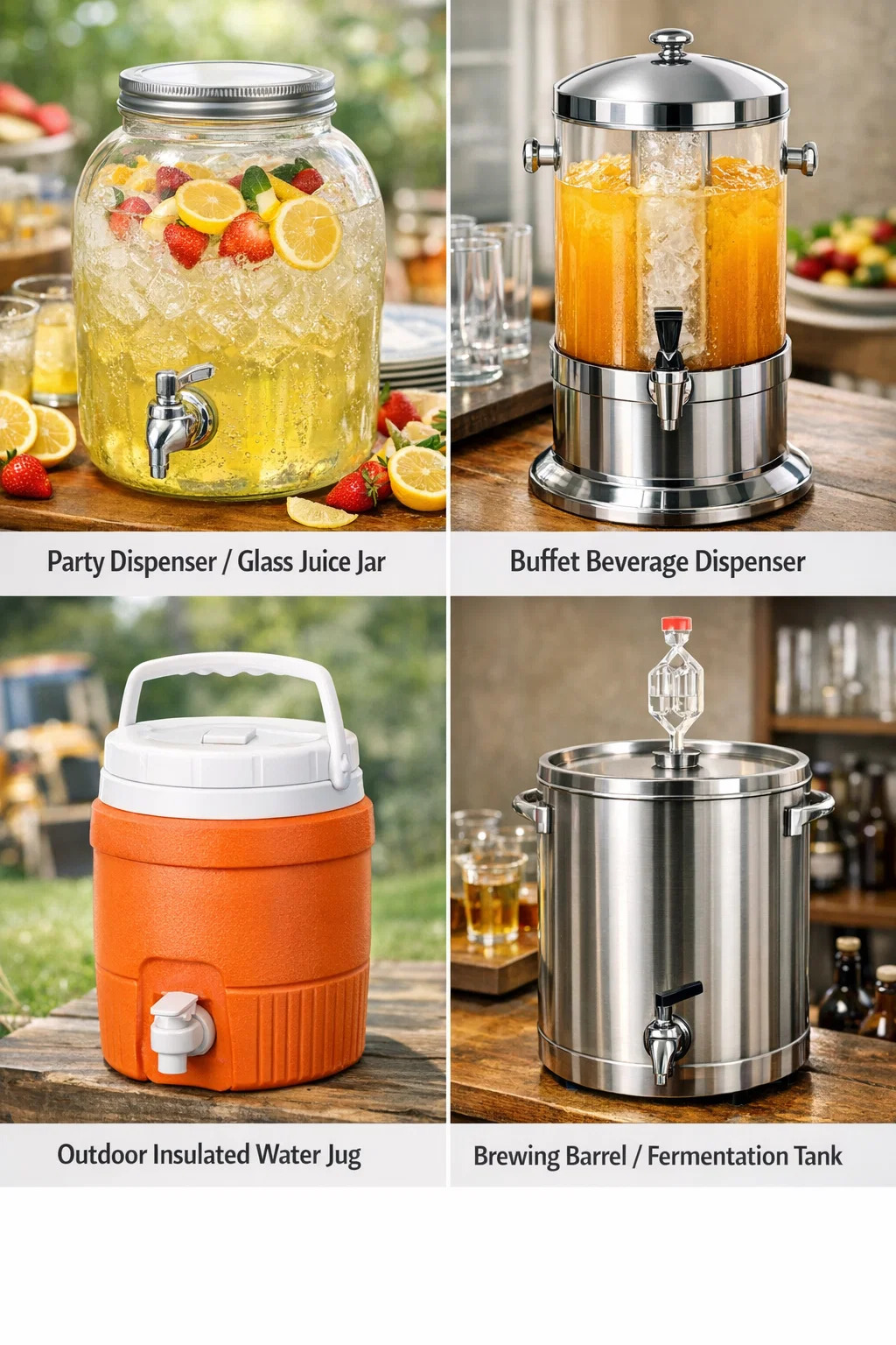 In unserem täglichen Leben haben diese Behälter mit kleinem Zapfhahn, in denen sich Menschen zum Trinken treffen, je nach Aussehen und Verwendung verschiedene Namen. Wenn Sie online suchen oder in einem Geschäft nachfragen, erhalten Sie mit den folgenden Namen mit Sicherheit das richtige Ergebnis: