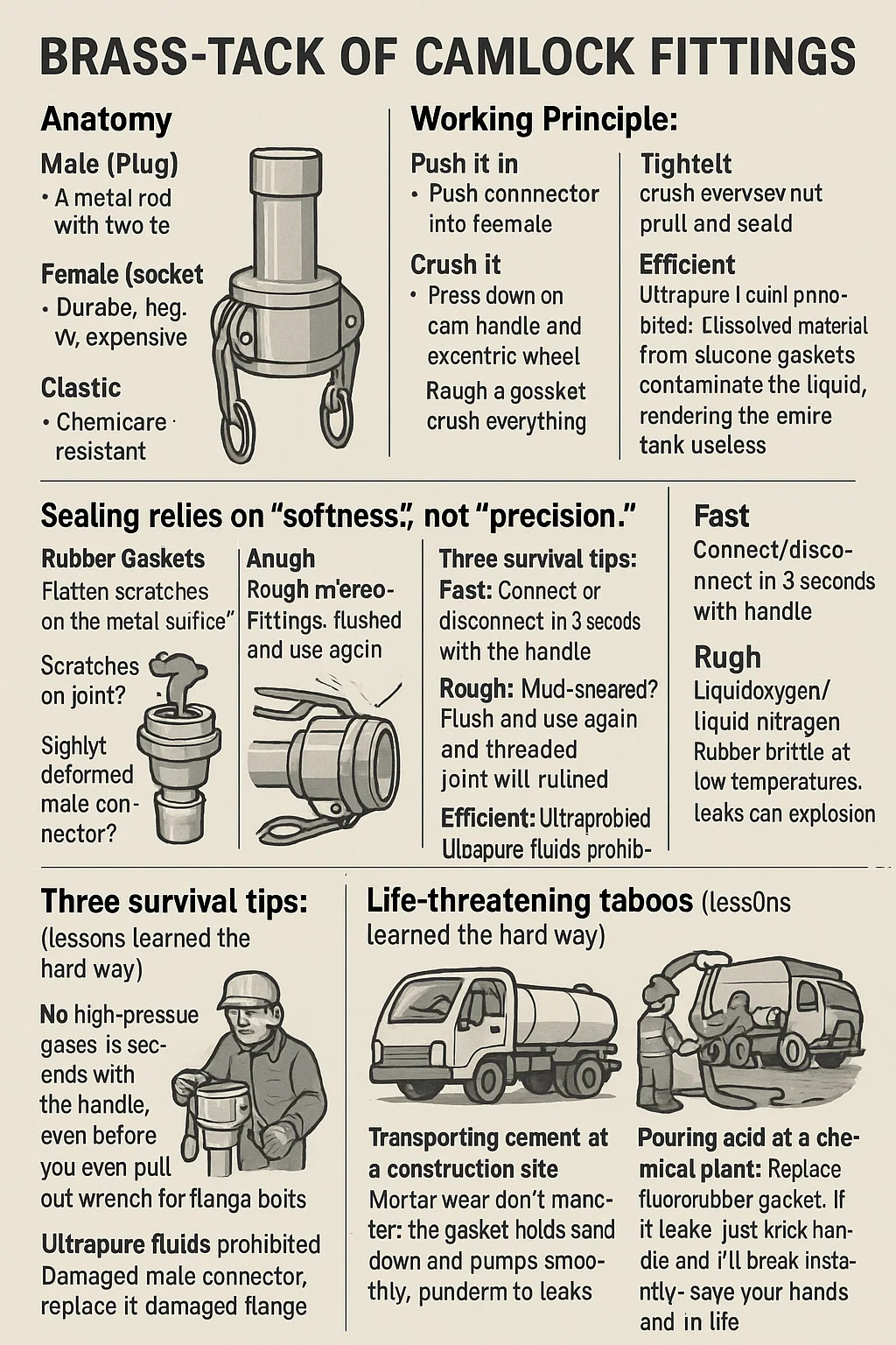 Gummidichtungen: Dehnen sich aus und versagen nach Kontakt mit Benzin/Dieselkraftstoff, was zu Leckagen führt!