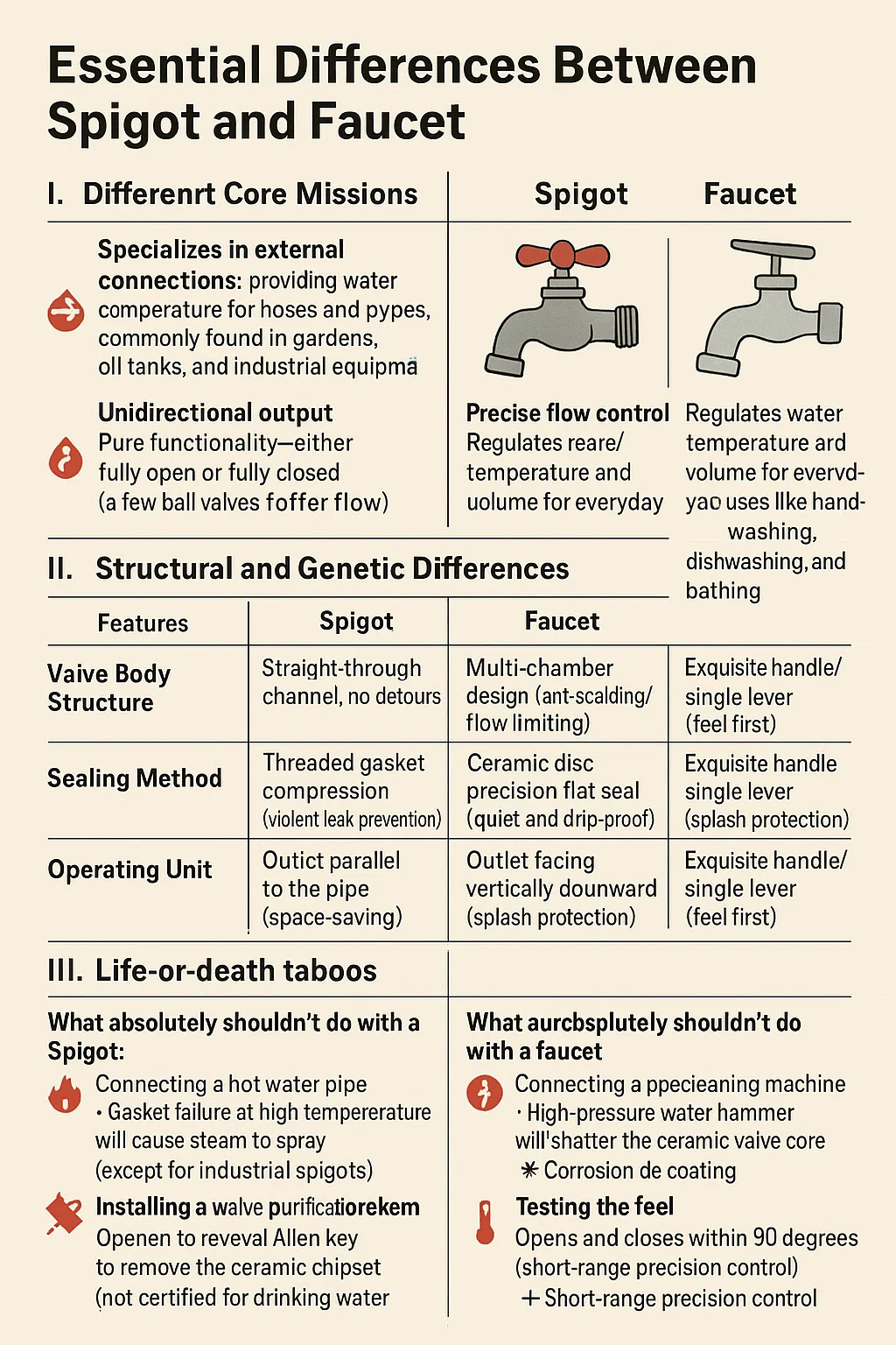 Was Sie mit einem Wasserhahn auf keinen Fall tun sollten: Anschließen einer Rohrreinigungsmaschine → Hochdruck-Wasserschläge zerstören den Keramikventilkern. ️ Abgabe von Dieselkraftstoff/sauren oder alkalischen Lösungen → Korrosion der Beschichtung verstopft den Luftsprudler